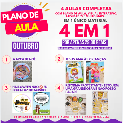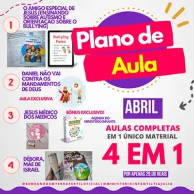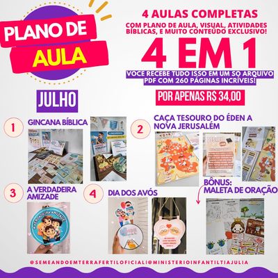 PLANO DE AULA PARA JULHO - 4 EM 1 PARA O MINISTÉRIO INFA
